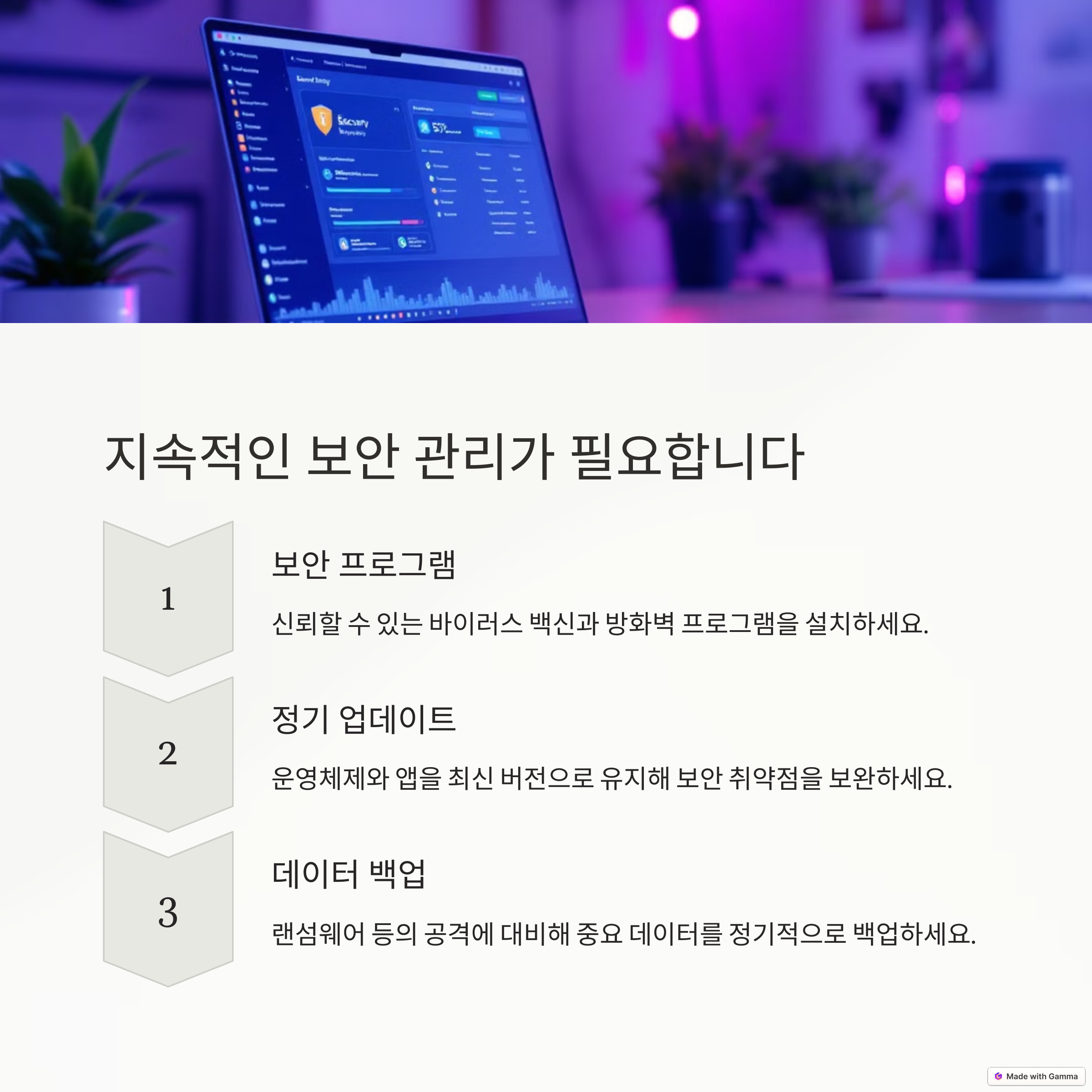 해킹 피해를 예방하려면 **의심스러운 링크**를 클릭하지 말고, 정기적으로 **백업**을 해두는 것이 중요합니다. 특히 피싱 공격은 매우 교묘하게 이루어지므로, 이메일이나 문자 메시지의 링크를 클릭하기 전에 **URL을 철저히 확인**하는 습관을 들이세요. 또한, 중요한 파일과 데이터는 **클라우드 서비스**나 **외장 하드 드라이브**에 백업해 두는 것이 좋습니다.